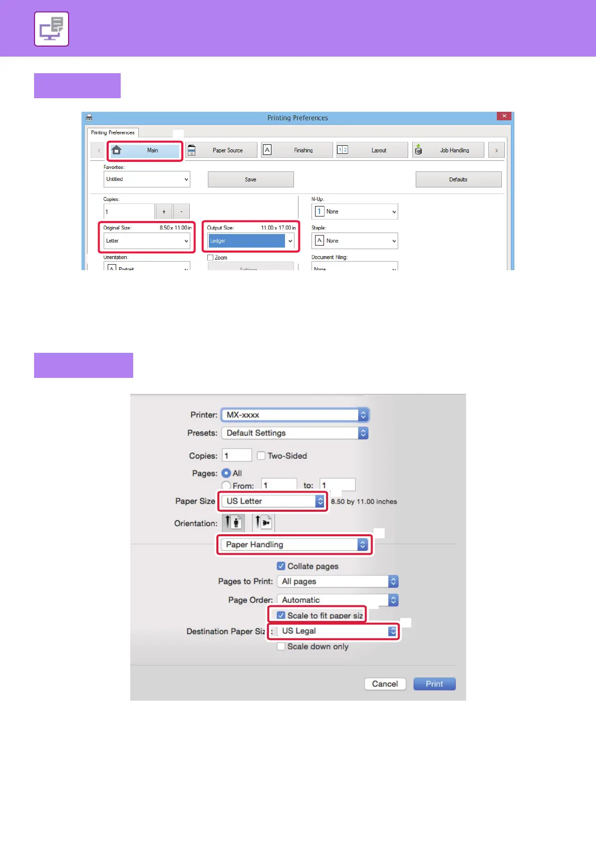 (4) Select the actual paper size to be used for printing (for example: Legal).