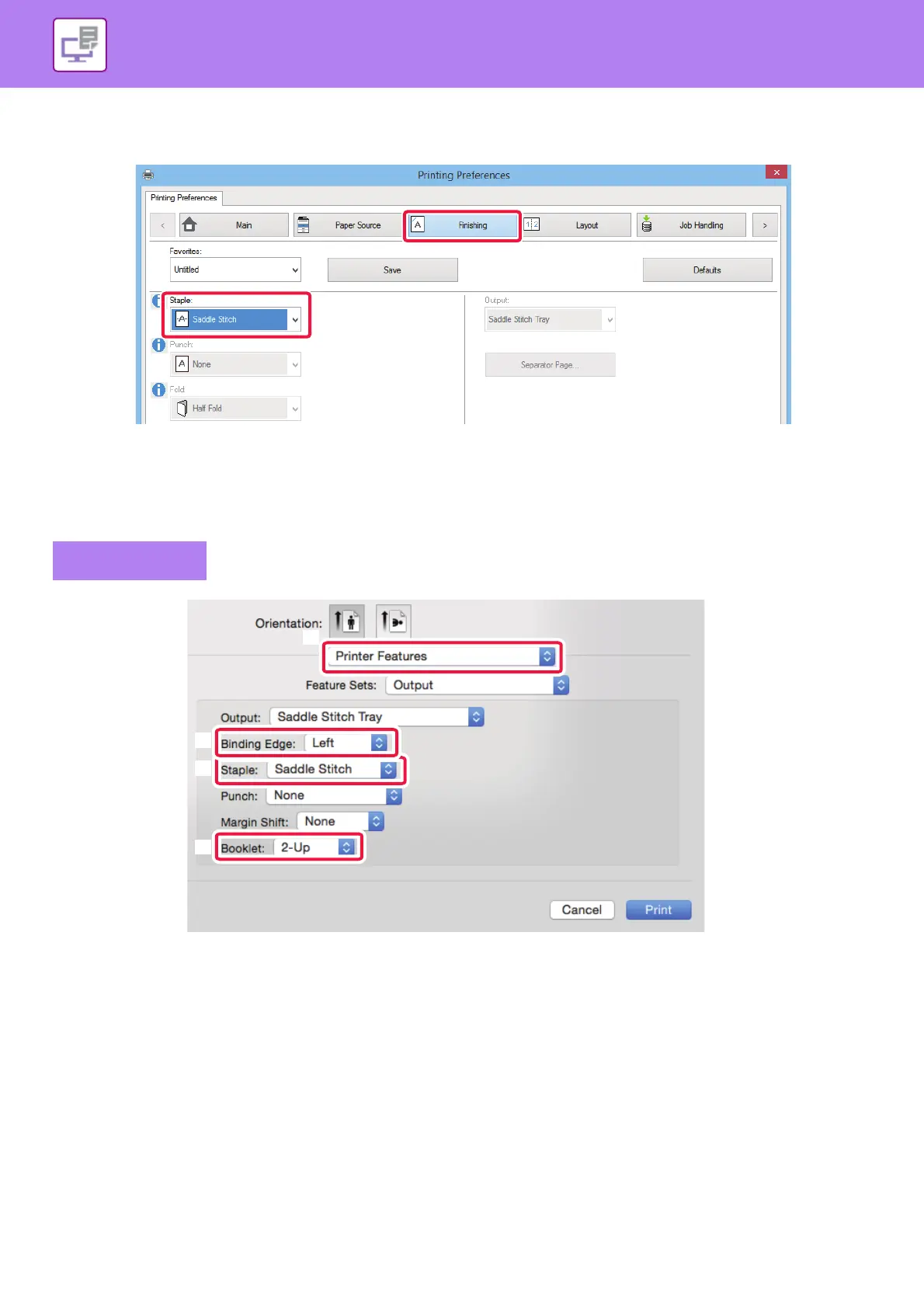 (5) Select [Saddle Stitch] from "Staple".