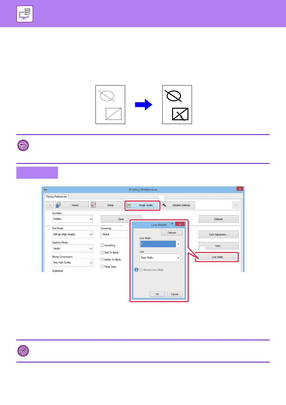 • (Normally this setting is not necessary.) When printing from an application that processes lines as raster graphics, line