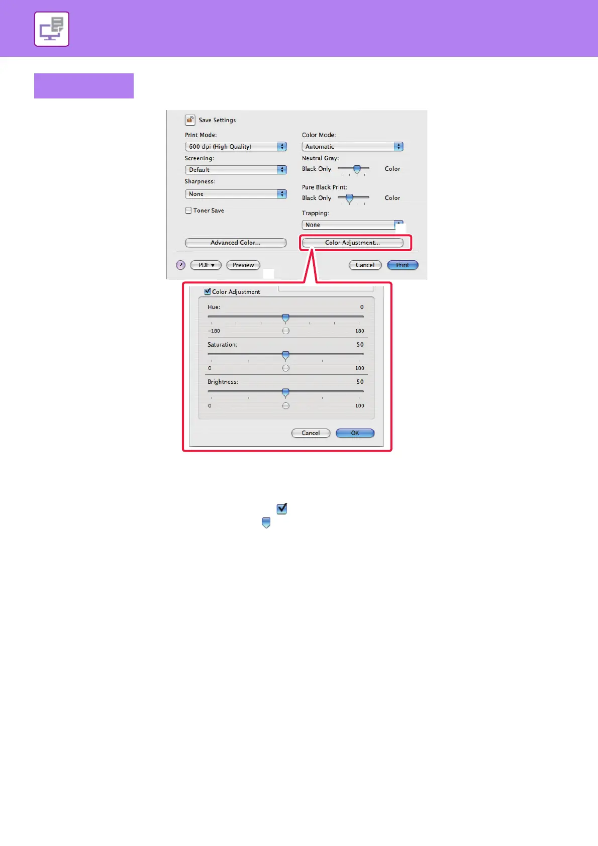 (3) Select the [Image Adjustment] checkbox ( ) and adjust the colour settings.