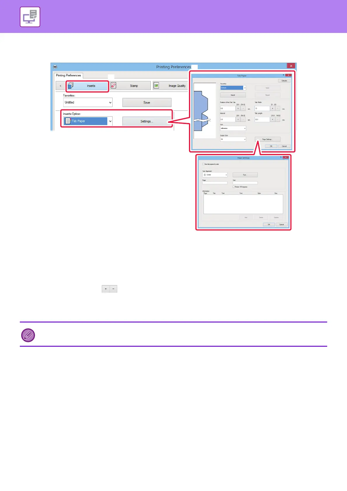 (2) Select [Tab Paper] from “Inserts Option”, and click the [Settings] button.