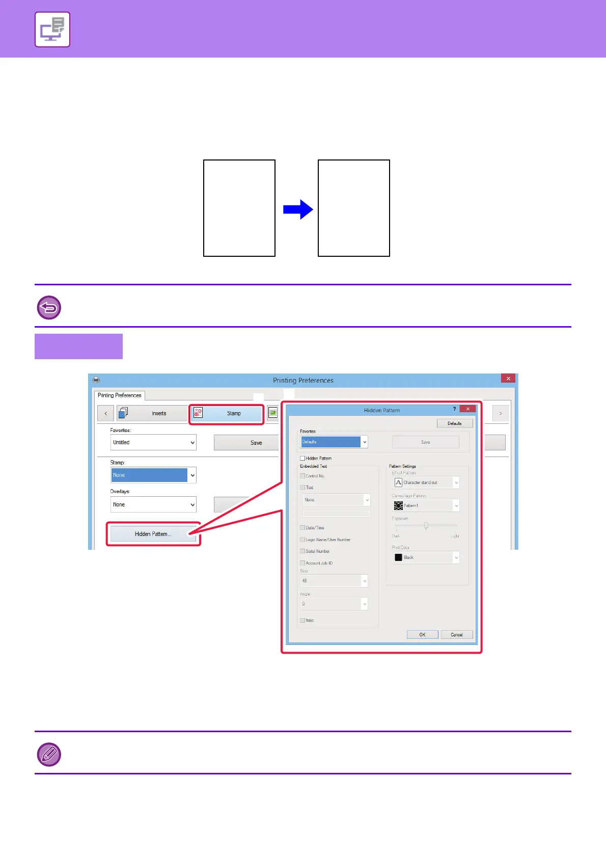 If paper with pattern data is duplicated, the pattern data emerges in the background, which will help to prevent