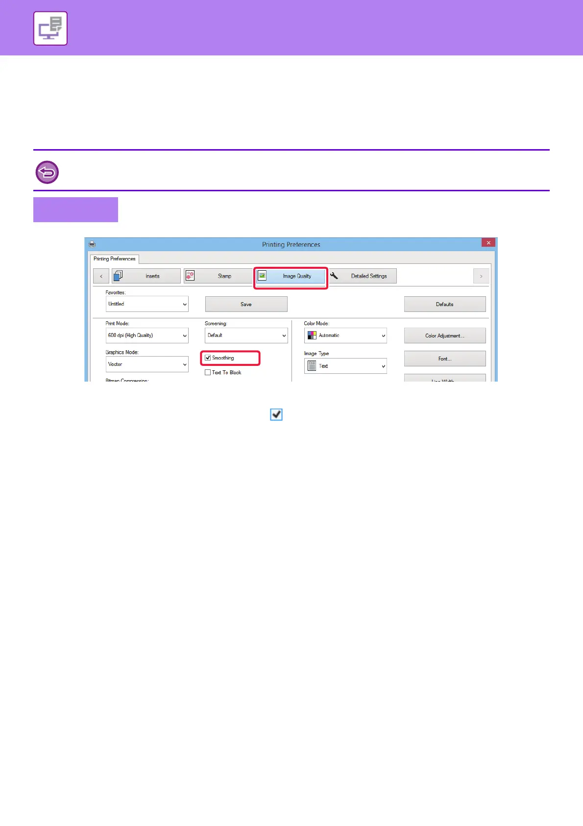 (2) Select the [Smoothing] checkbox so that appears.