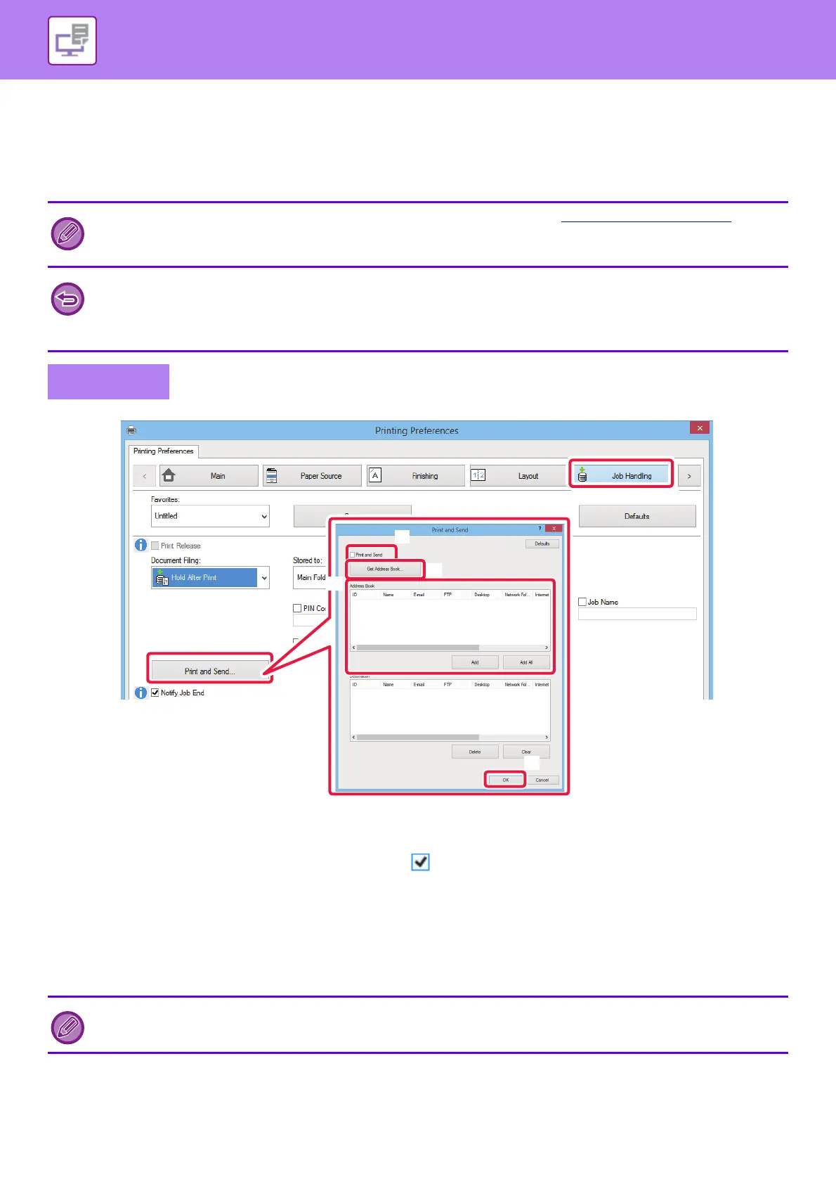 This function allows you to complete two tasks, printing and sending, with one operation from the printer driver.