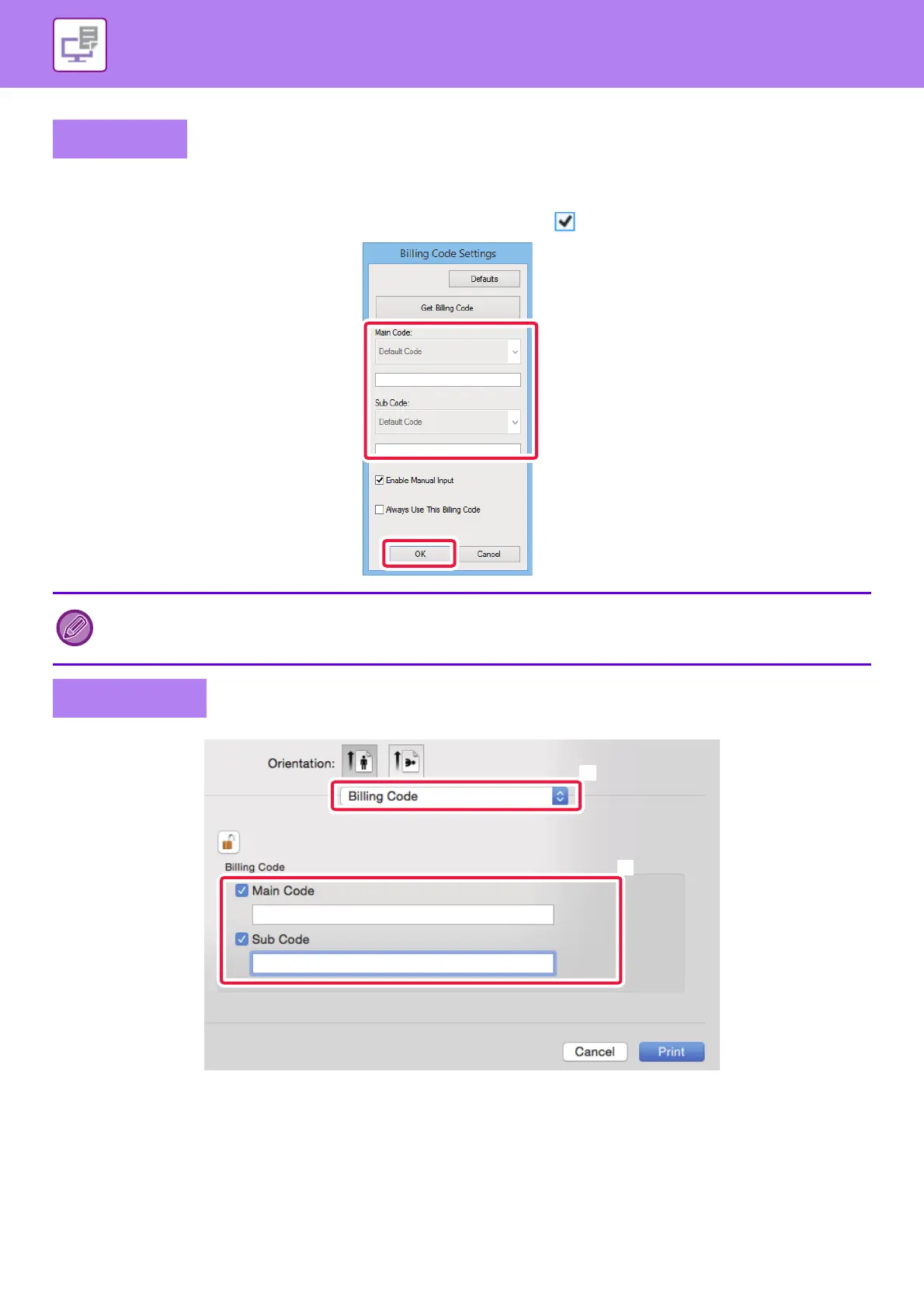 • If you have started printing without specifying a billing code, a use code is recorded in the job log.