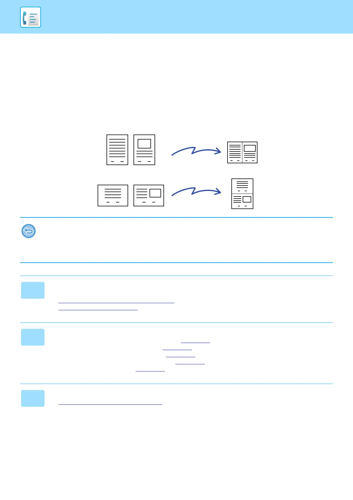 Reduce two original pages to the equal size and sent them as a single page. This function is convenient when you have