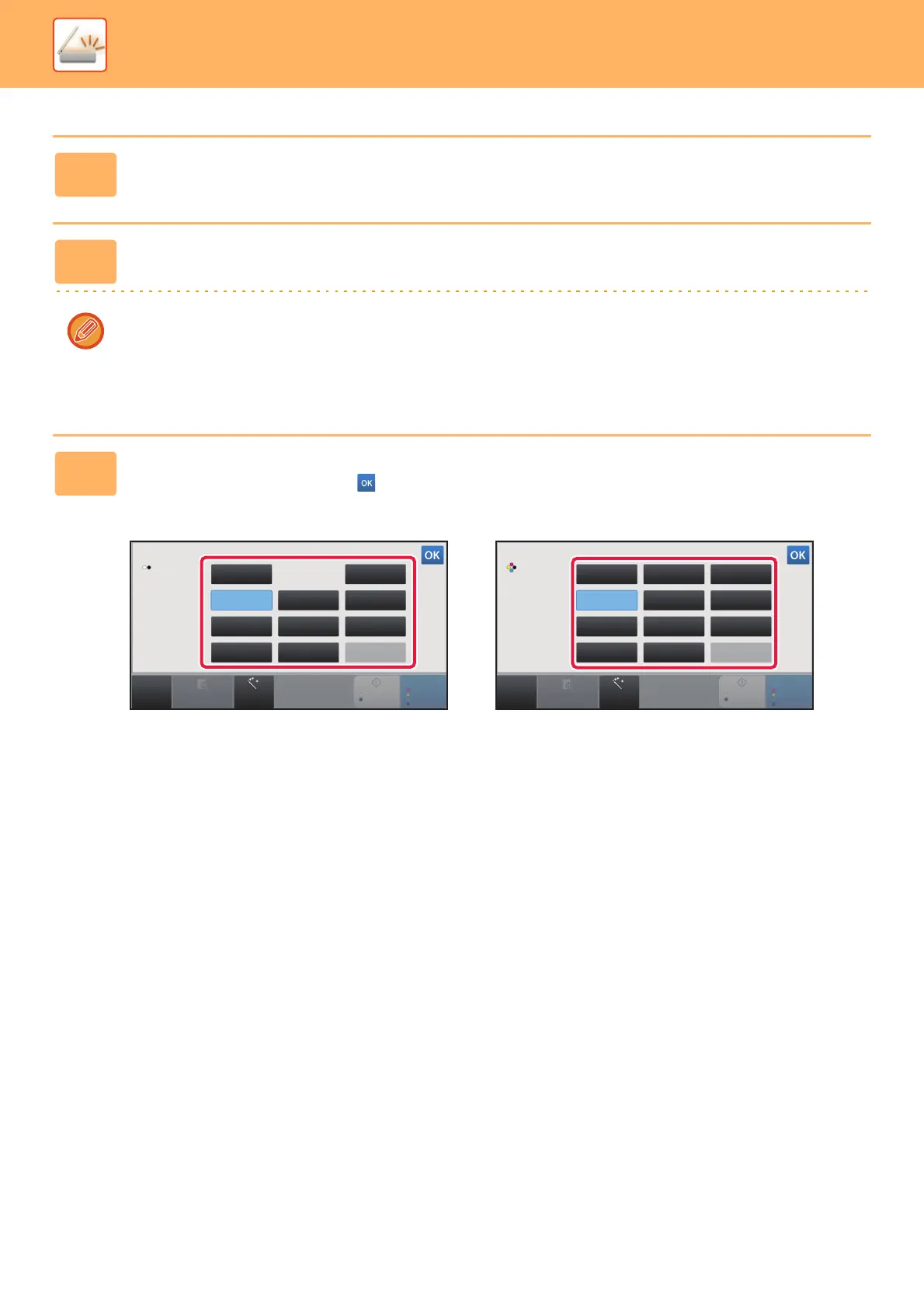 • The format setting for [Color/Grayscale] mode is the file format with the [Color Start] key is tapped.
