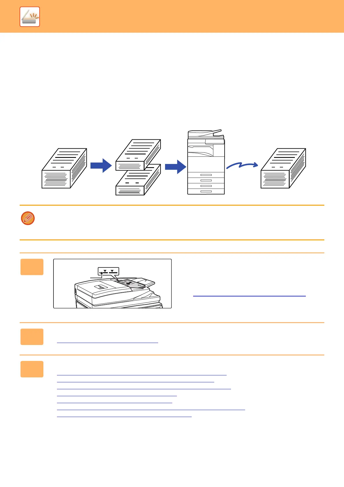 Use this function when there are more original pages than can be placed at once in the automatic document feeder.