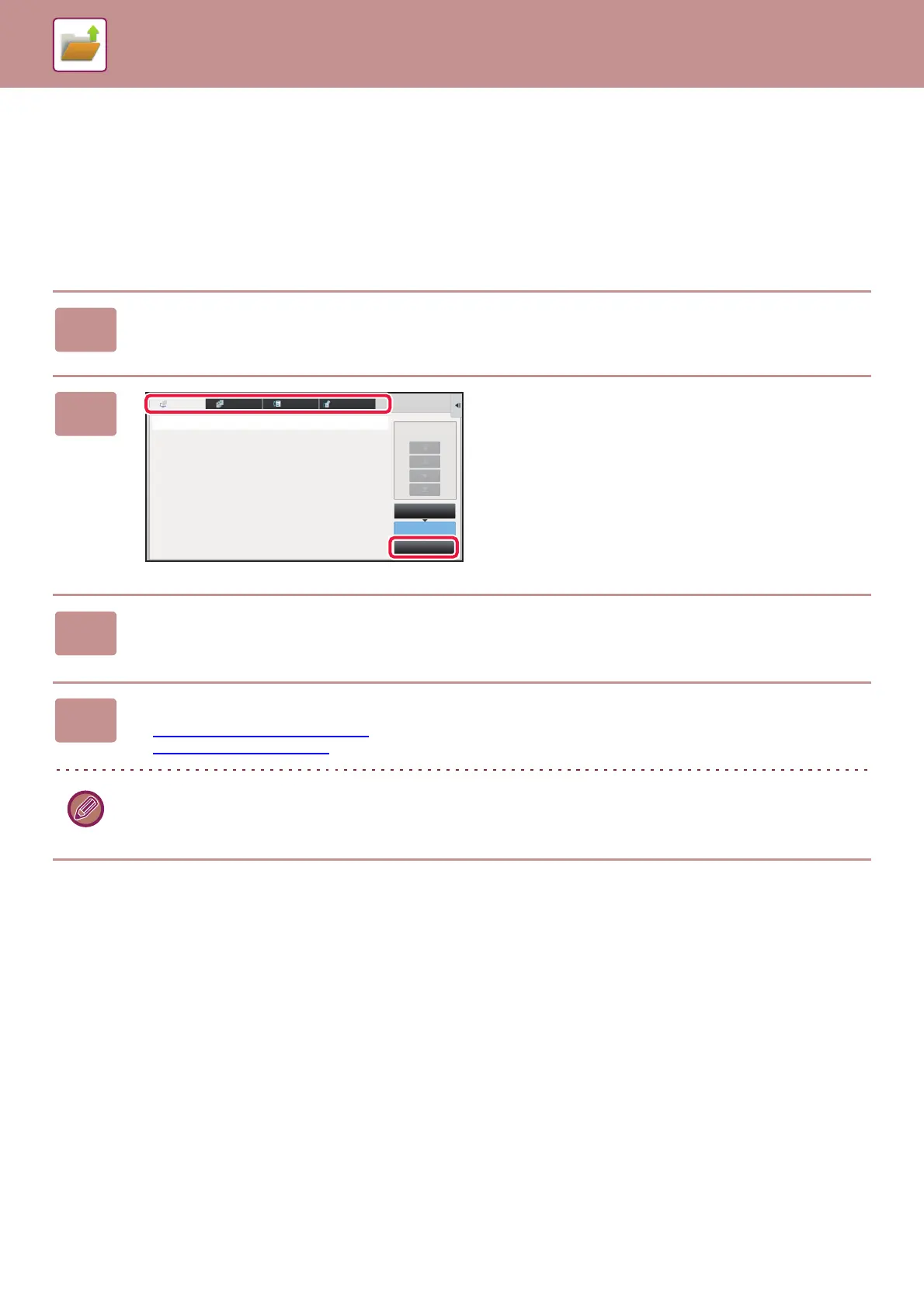 This is convenient when you need to quickly print the saved data of a copy job or quickly send a saved fax to another