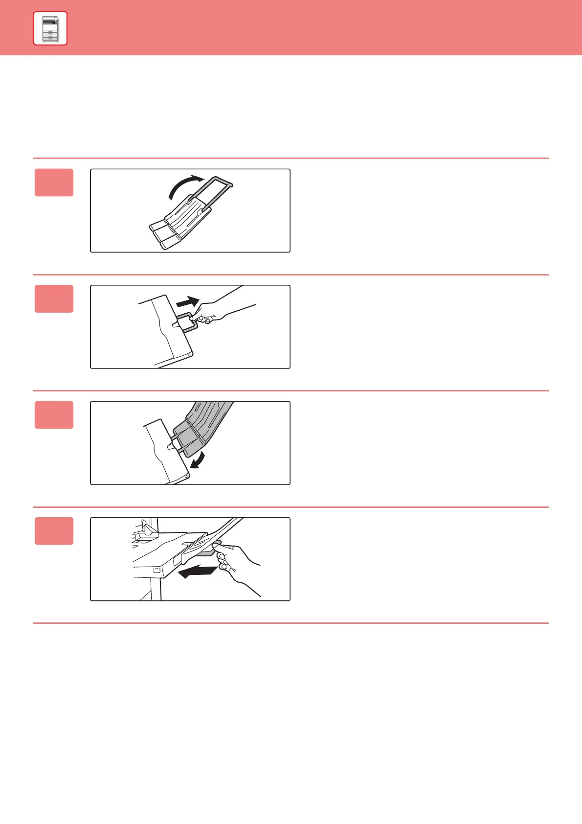 The steps for attaching the optional long paper feeding tray to the bypass tray are explained below.