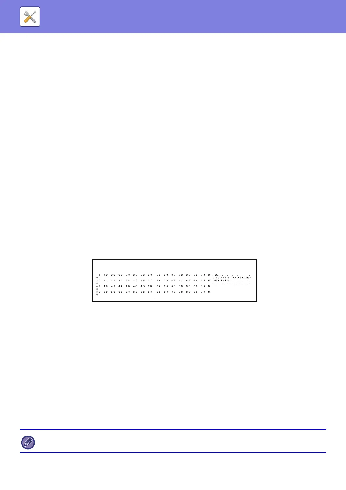 ASCII text. This mode allows you to check whether or not print data from the PC is being transmitted to the printer