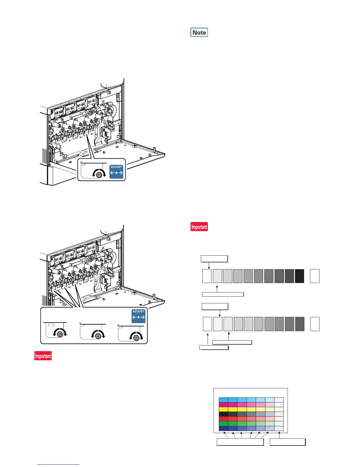adjustment screws to adjust, and perform the procedures 2) to