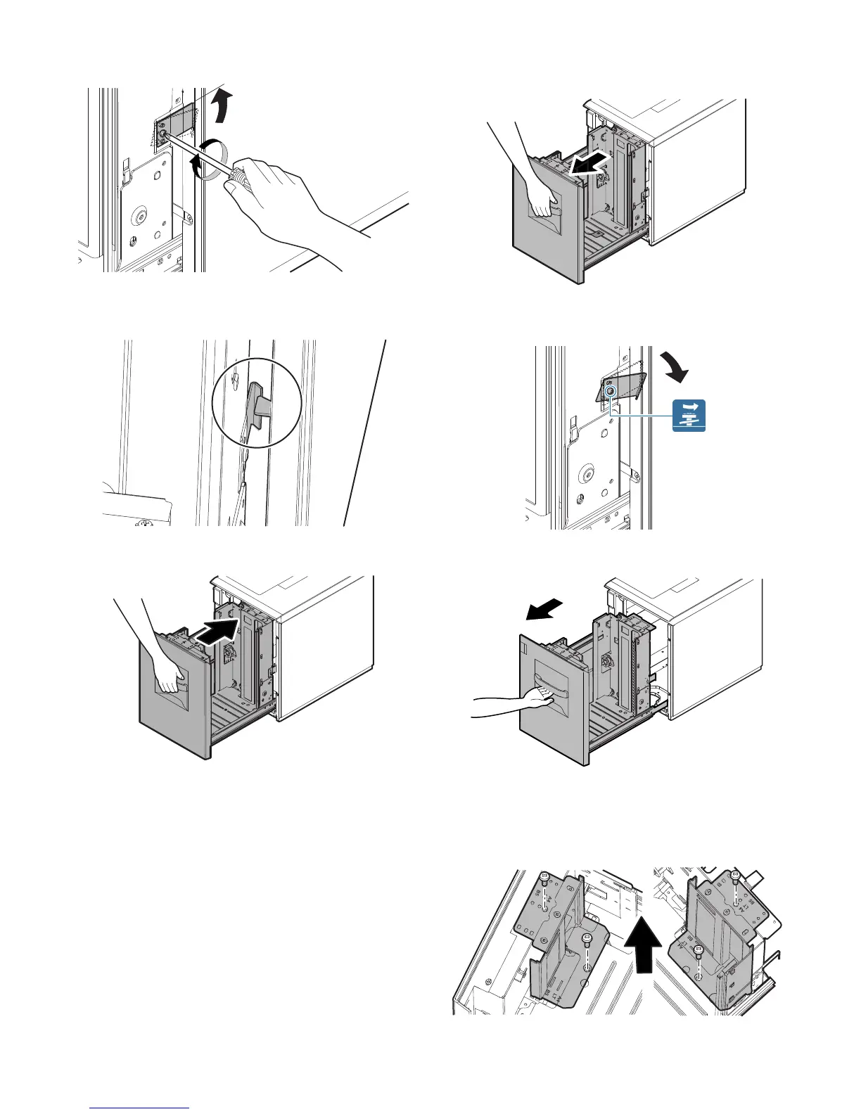 1) Slowly pull out the tray until it stops.