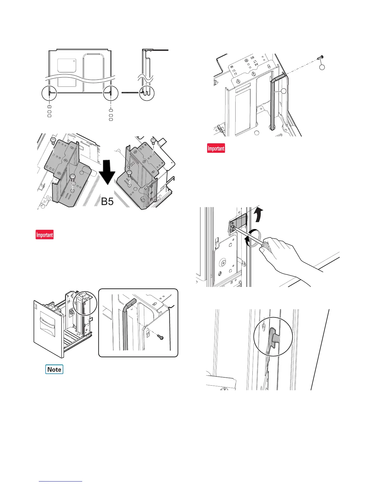 1) Remove the rear edge shift fixing screw (blue screw) which is