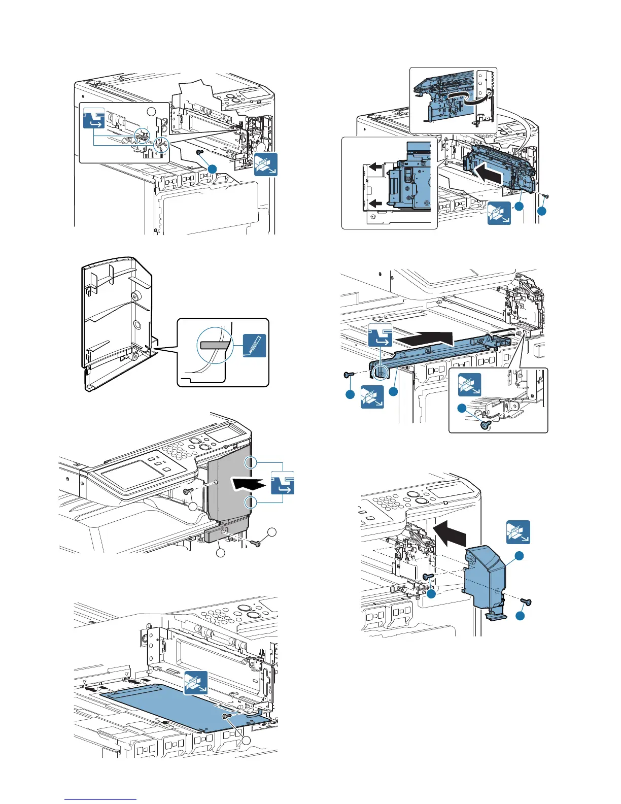 8) Attach the front rail guide and fix it with the screw (M4 x 7 S