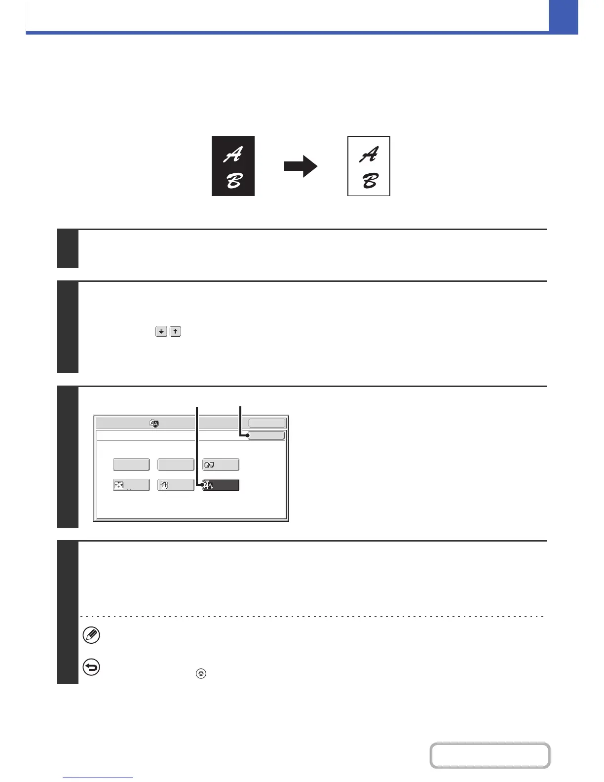 Originals with large black areas (which use a large amount of toner) can be copied using Black/White Reverse to reduce