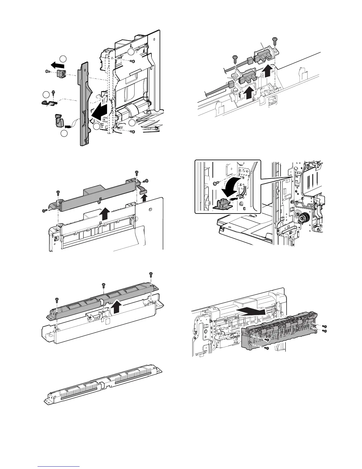 7) Remove each sensor mounting plate. Right tray paper exit full