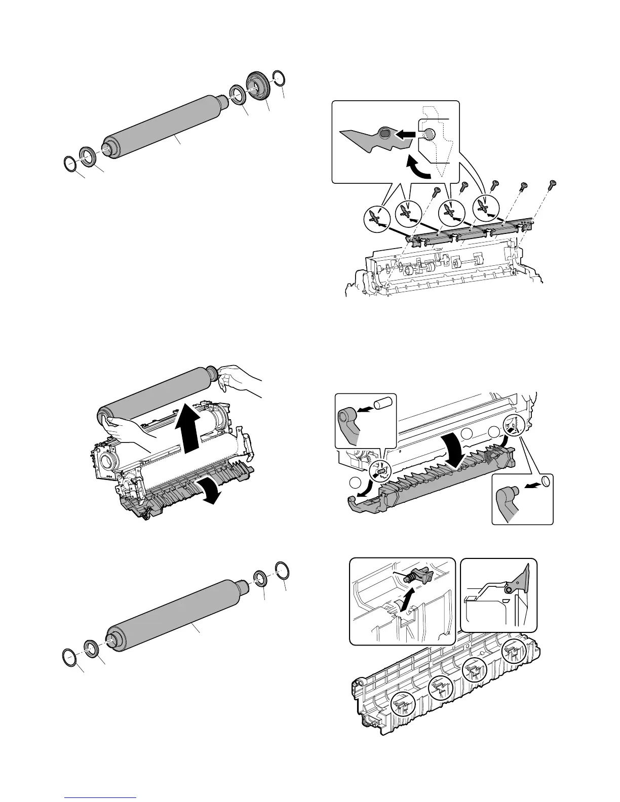 9) Remove the roller stopper (A). Remove the fusing gear (C),