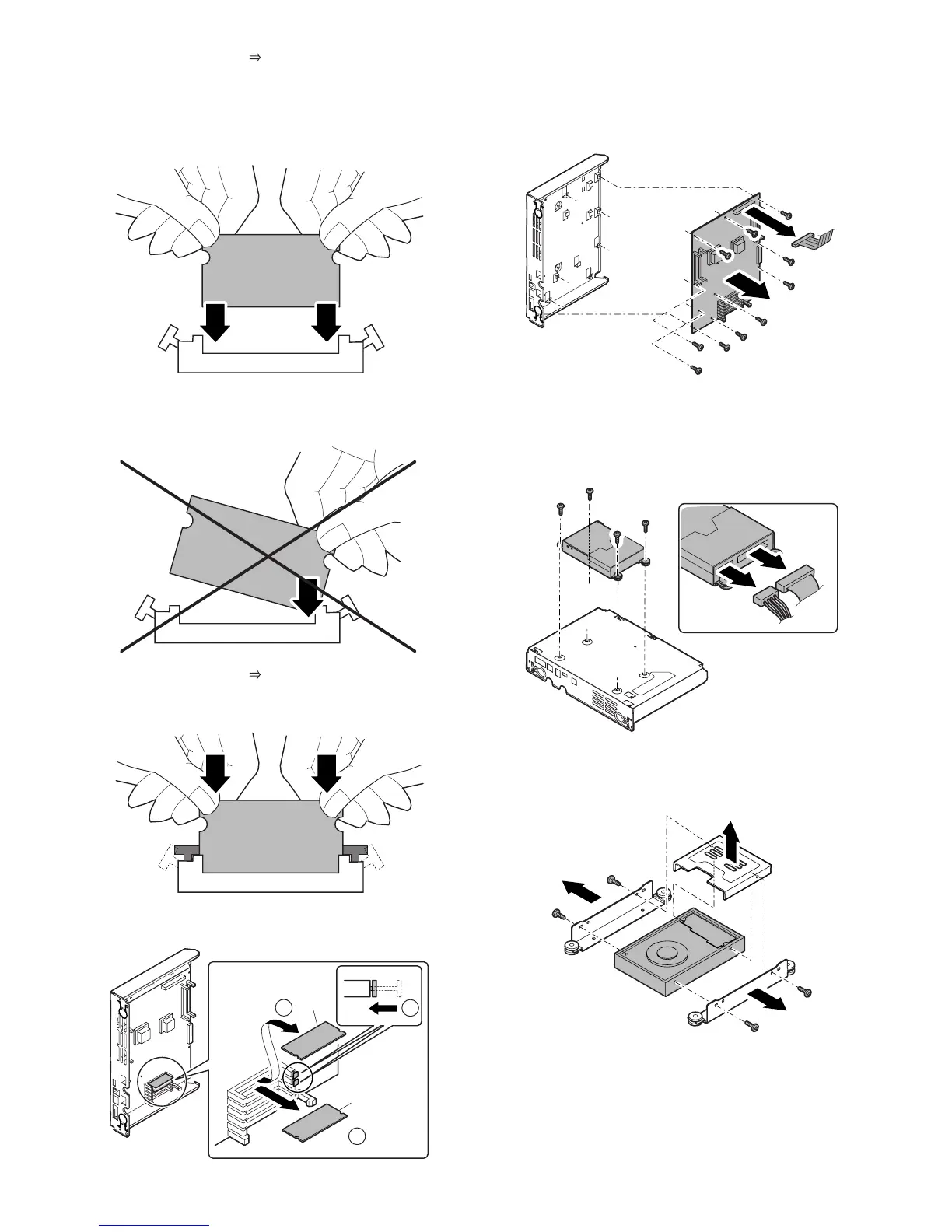 b) Press the section ( ) of the memory PWB with both