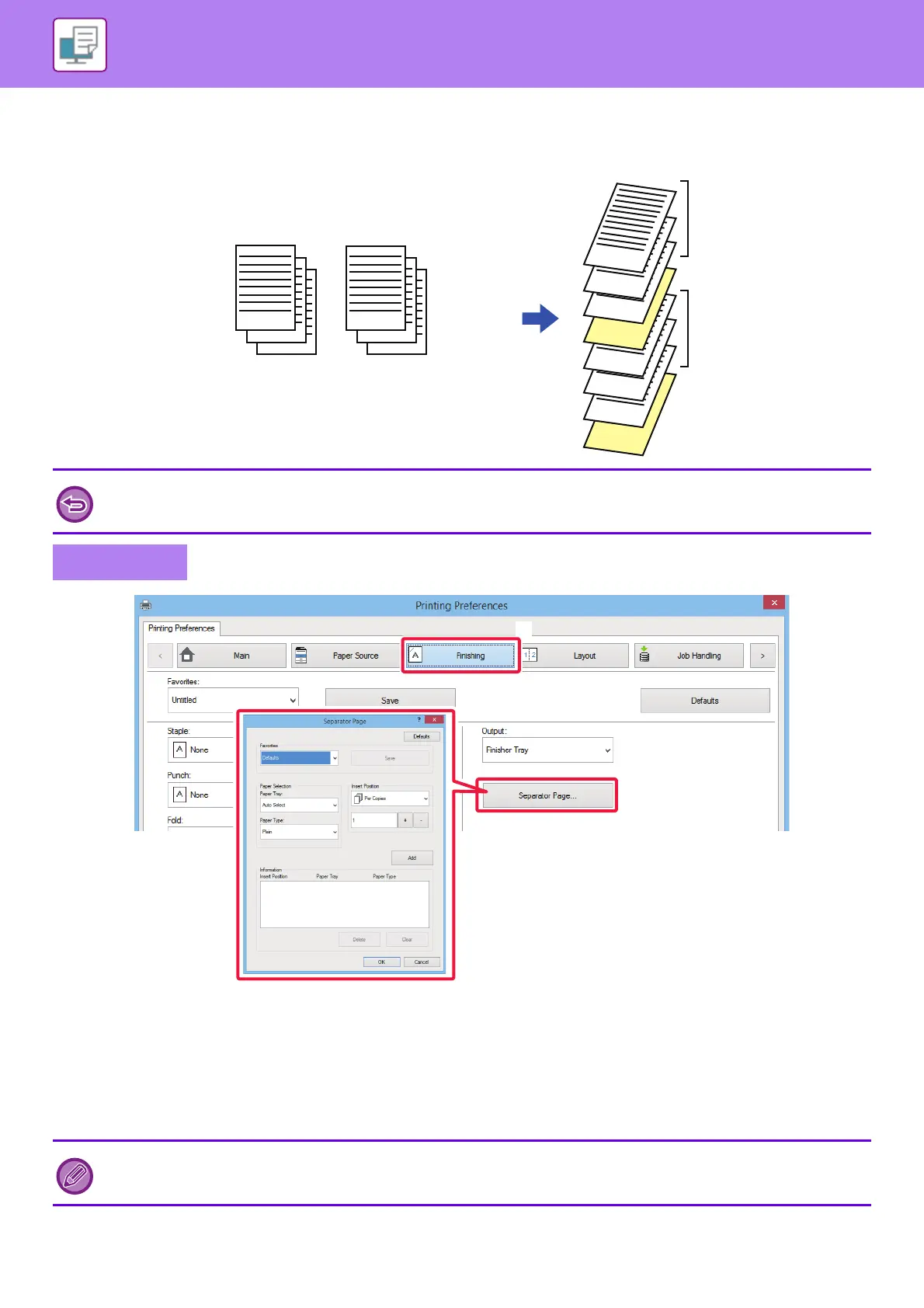 You can insert separator pages between jobs or the specified number of copies.