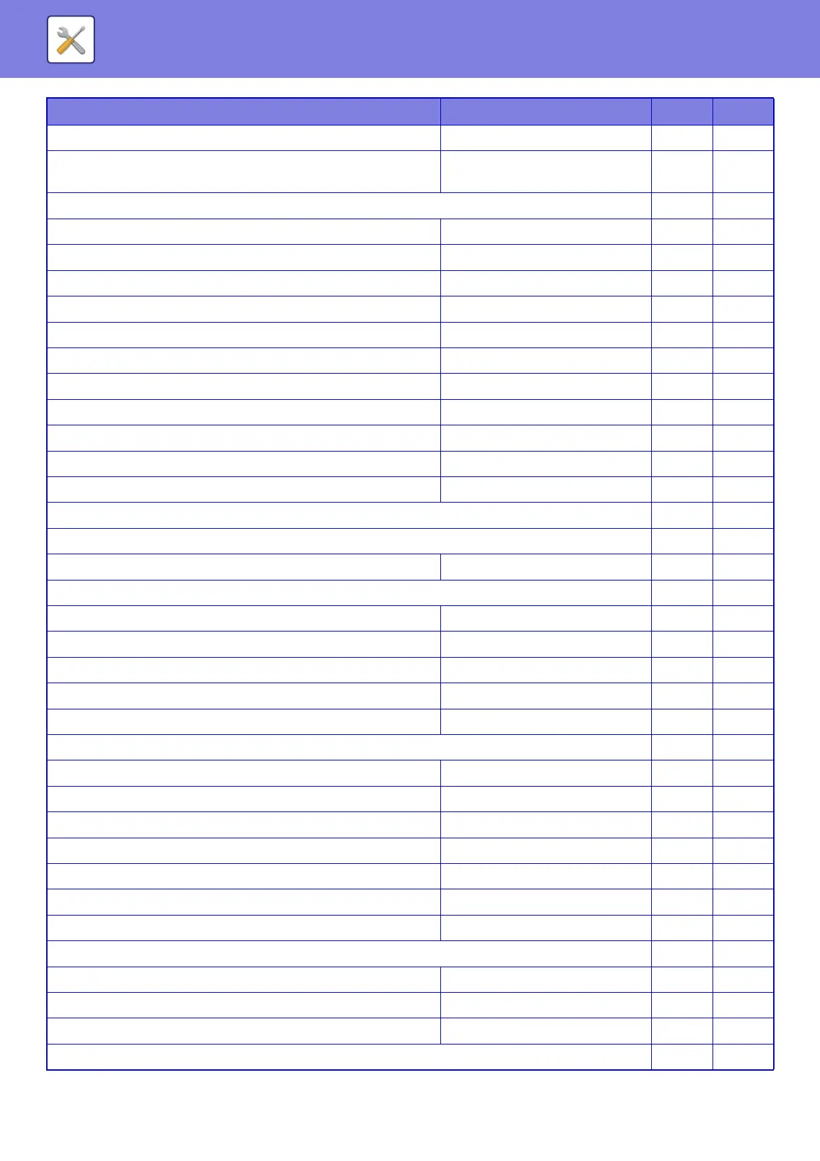 SYSTEM SETTINGS►SETTING MODE LIST