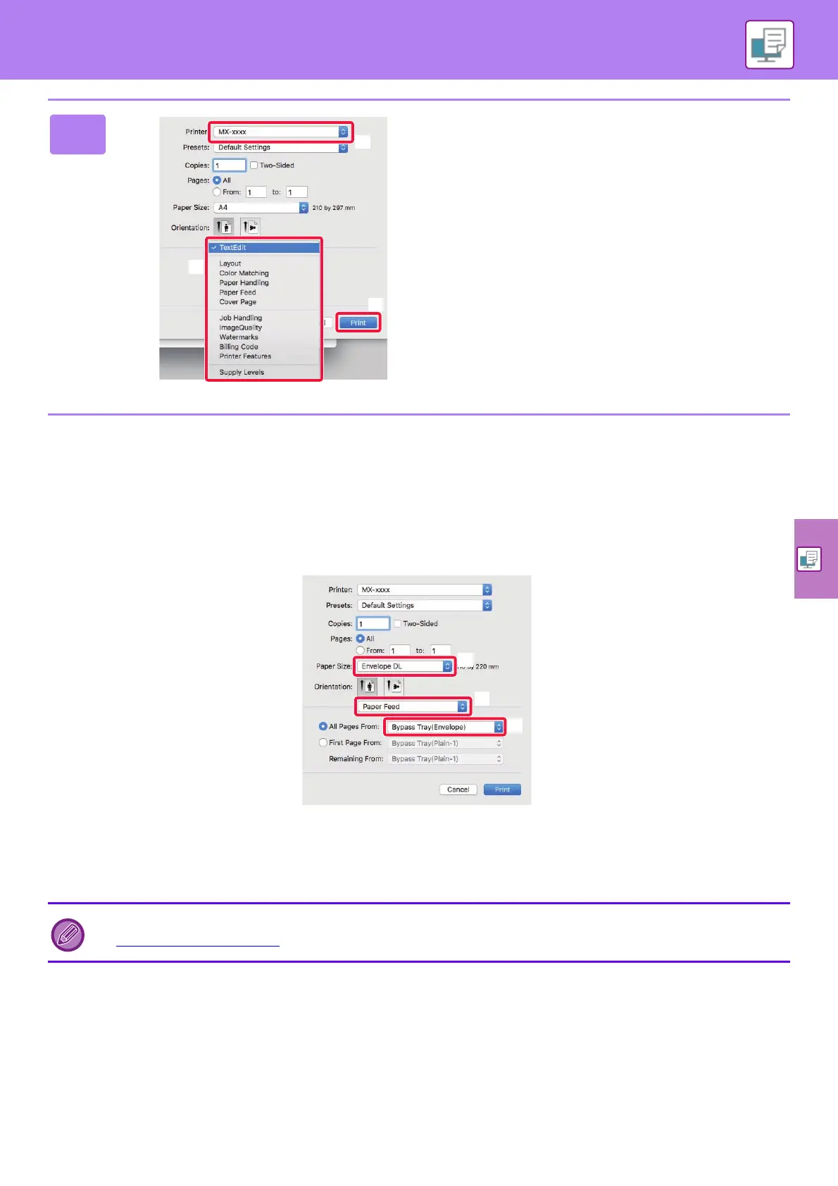 (1) Select the envelope size from "Paper Size".
