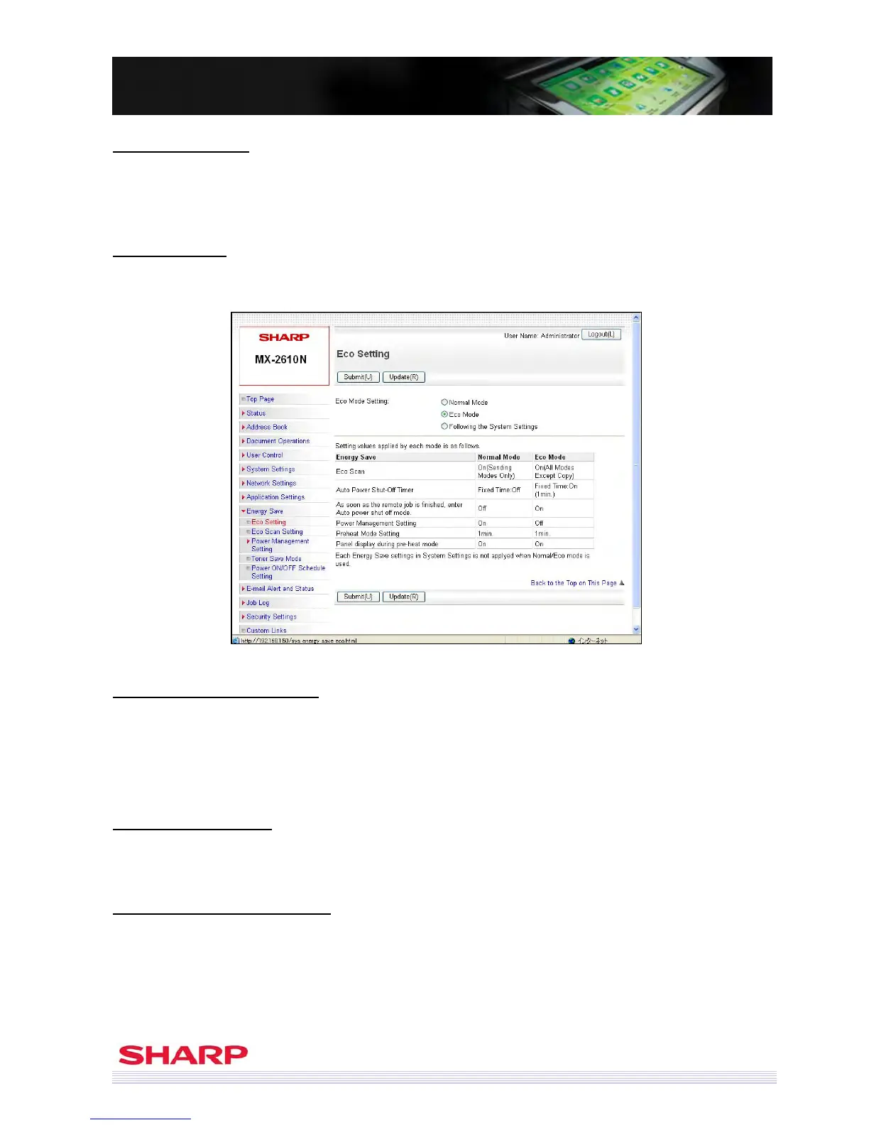 manually set the auto power shut-off timer through the MX-3610N / MX-3110N / MX-2610N web page. In