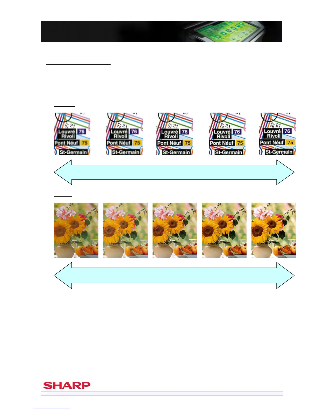 models. Therefore, “Moire reduction” is integrated into “Sharpness” from MX-3610N / MX-3110N / MX-2610N.