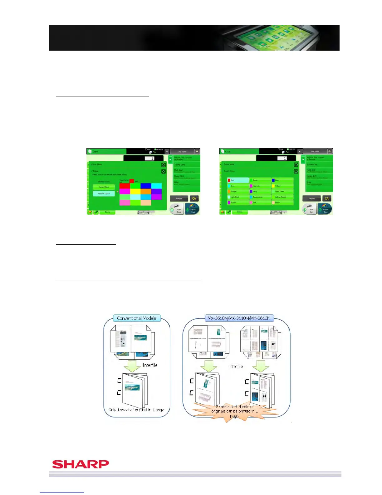 or 2-colour copy. In the case of 2-colour mode, they can choose not only extraction of red colour but also