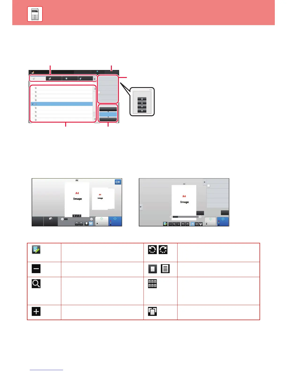 screen. In the Preview screen on the touch panel, you can view previews of jobs and images stored in the machine.