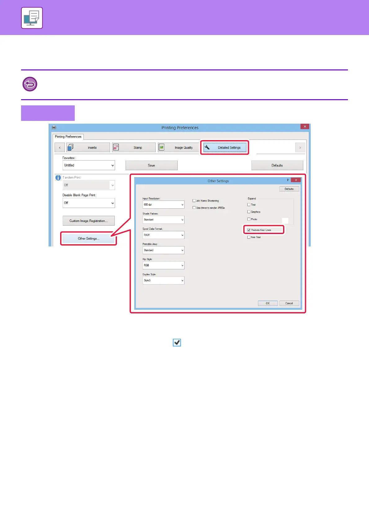 (3) Select the [Thicken Fine Lines] checkbox ( ).