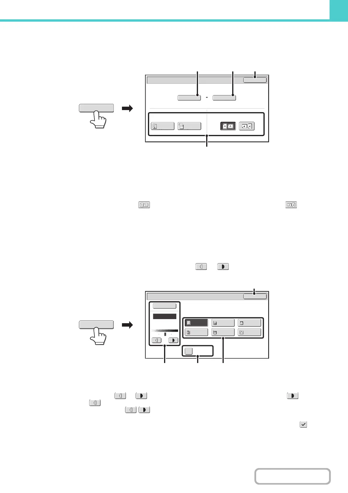 If the top edge of the original is up, touch the key. If the top edge of the original is to the left, touch the key.