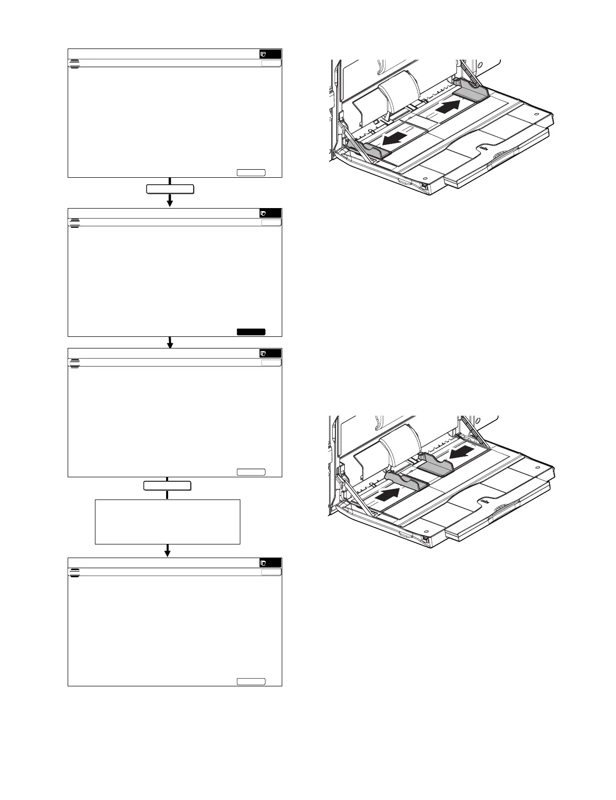 1) Go through the modes specified in Simulation 40-2. 2) Open the manual paper feed guide to the maximum width posi-