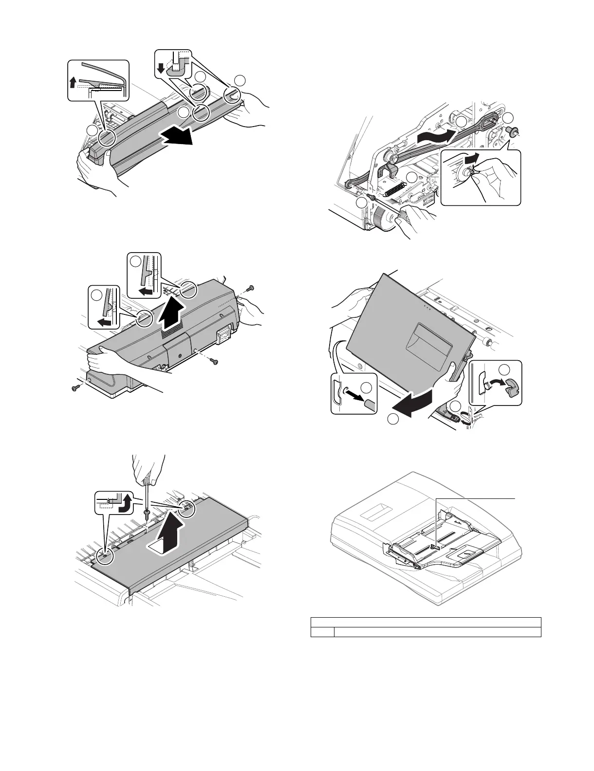 1) Open the upper door. Remove the screw. Remove the pawl.