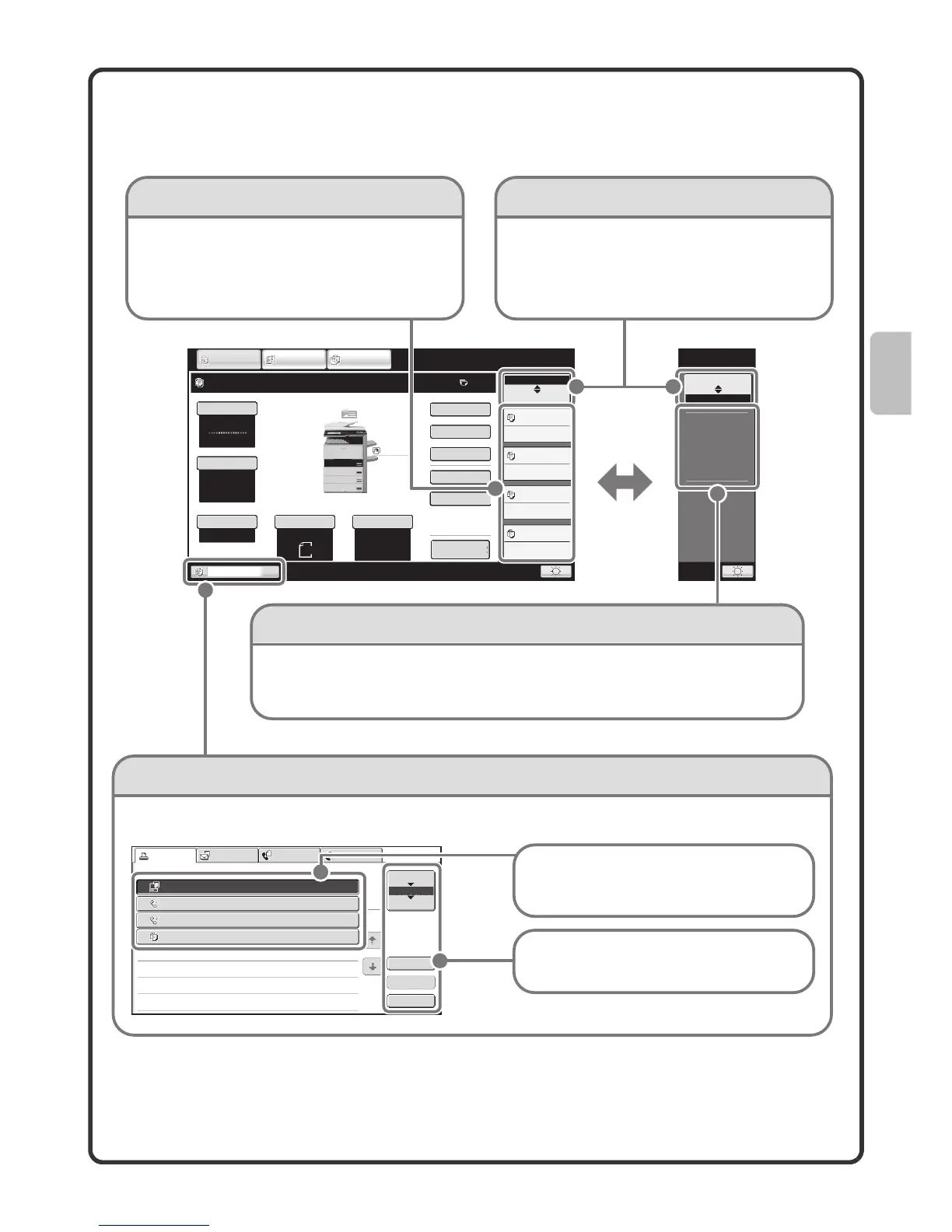 The mode icon of the reserved job or job in progress, the tray being used to feed paper, and the job status appear. This