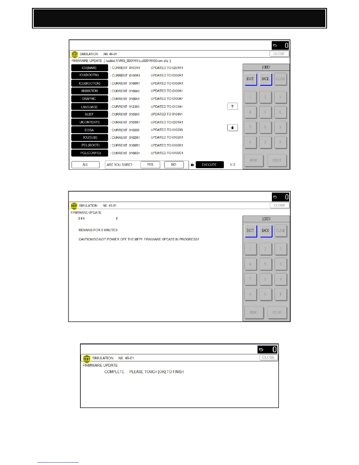 7. Once the firmware update has completed successfully, select OK (MFP should reboot).