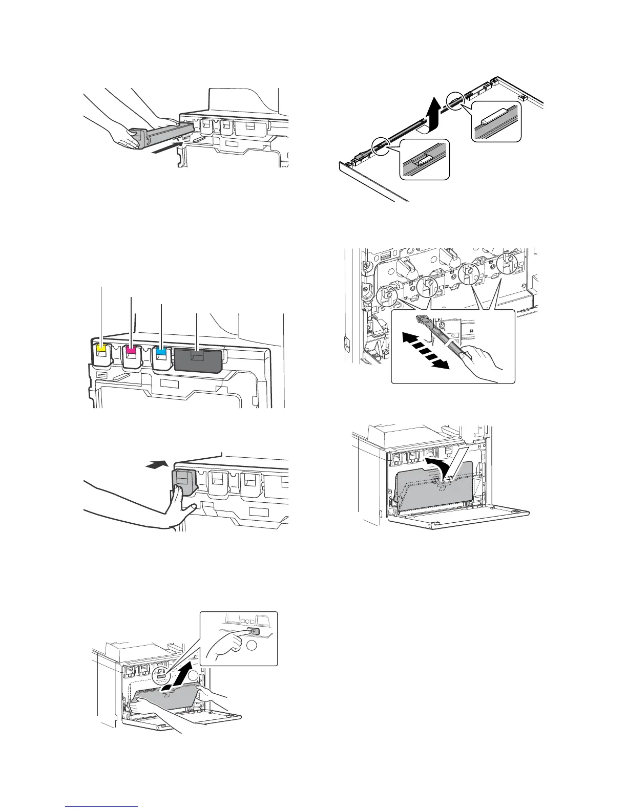 2) Open the front cabinet, and pull the toner cartridge out slowly