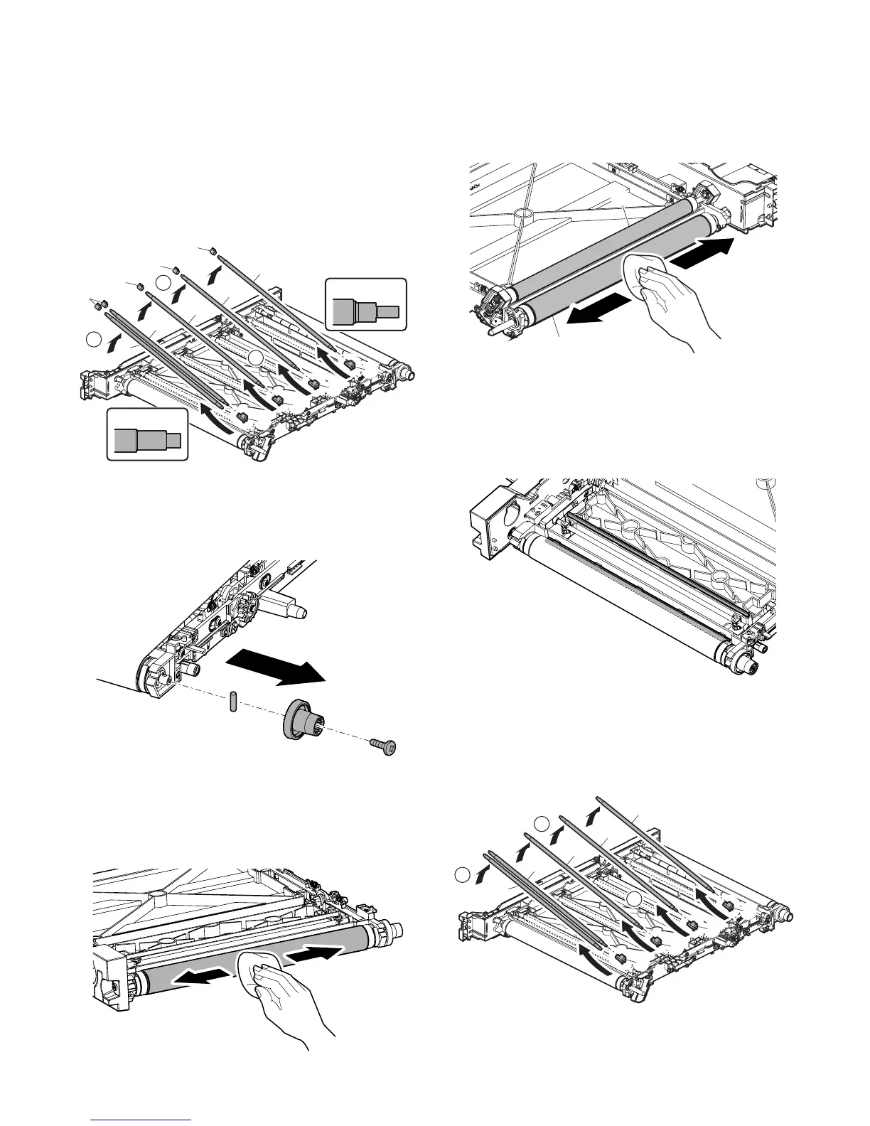 4) Clean the trasnfer follower roller (A) and the tension roller (B).