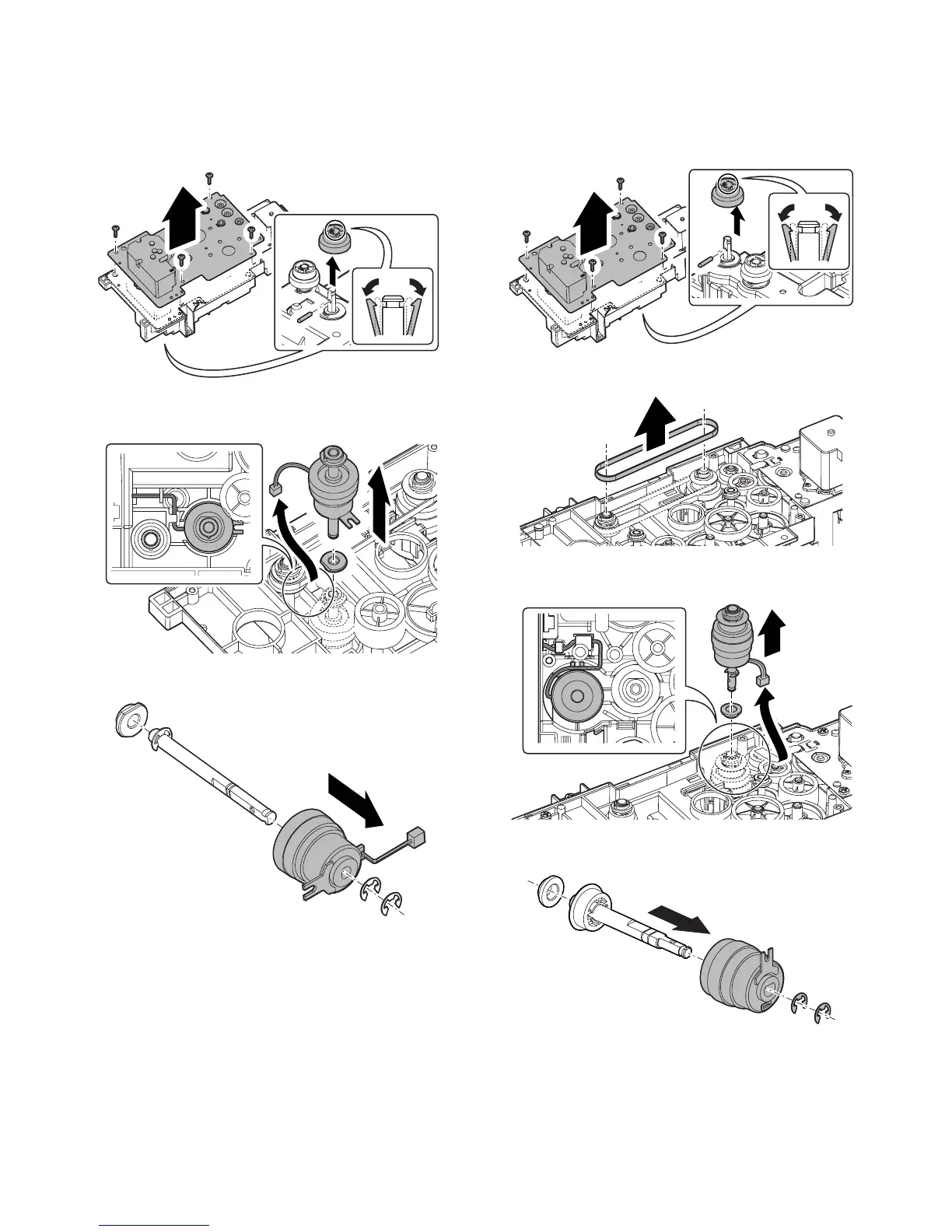 7) Remove the E-ring, then remove the tray vertical transfer