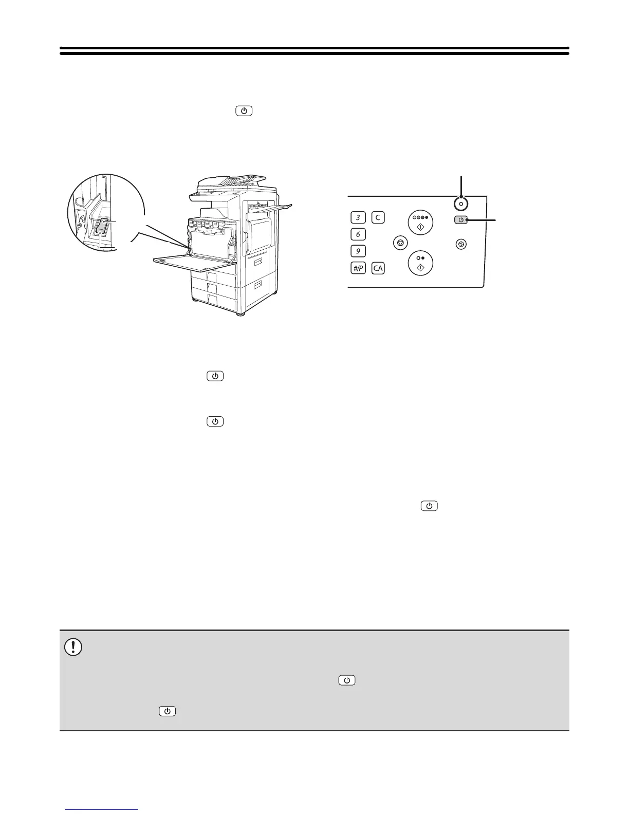 [POWER] key ( ) on the operation panel, the main power indicator on the operation panel will not turn off immediately.