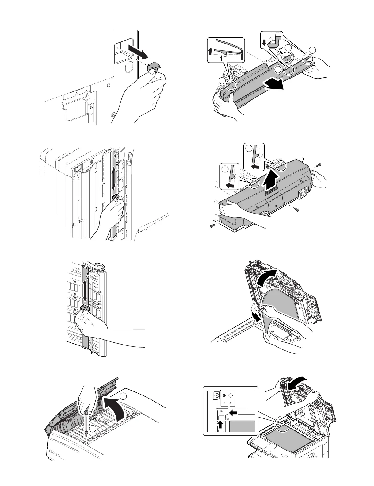 14) Remove the screw. Remove the pawl. Remove the rear cabi-