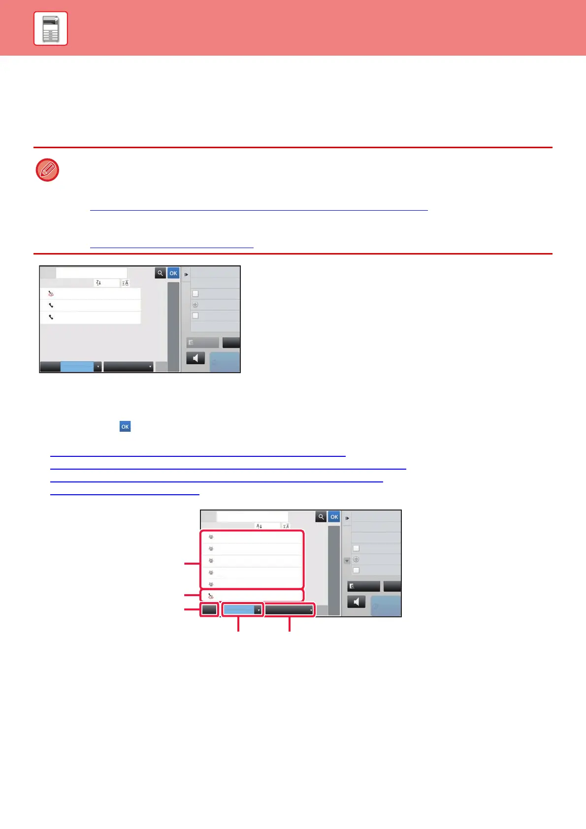Internet fax. You can also display it by tapping the [Address Book] icon in the home screen. "Contacts" and "Group"