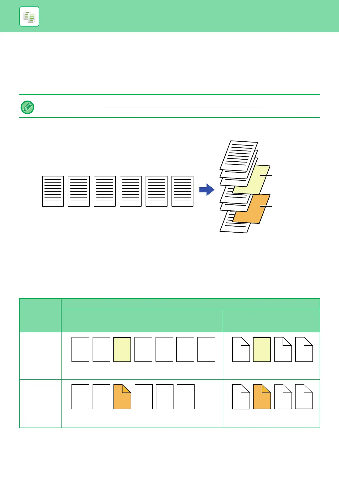 The following examples show the copy results when insertion sheets are inserted into six 1-sided originals or three