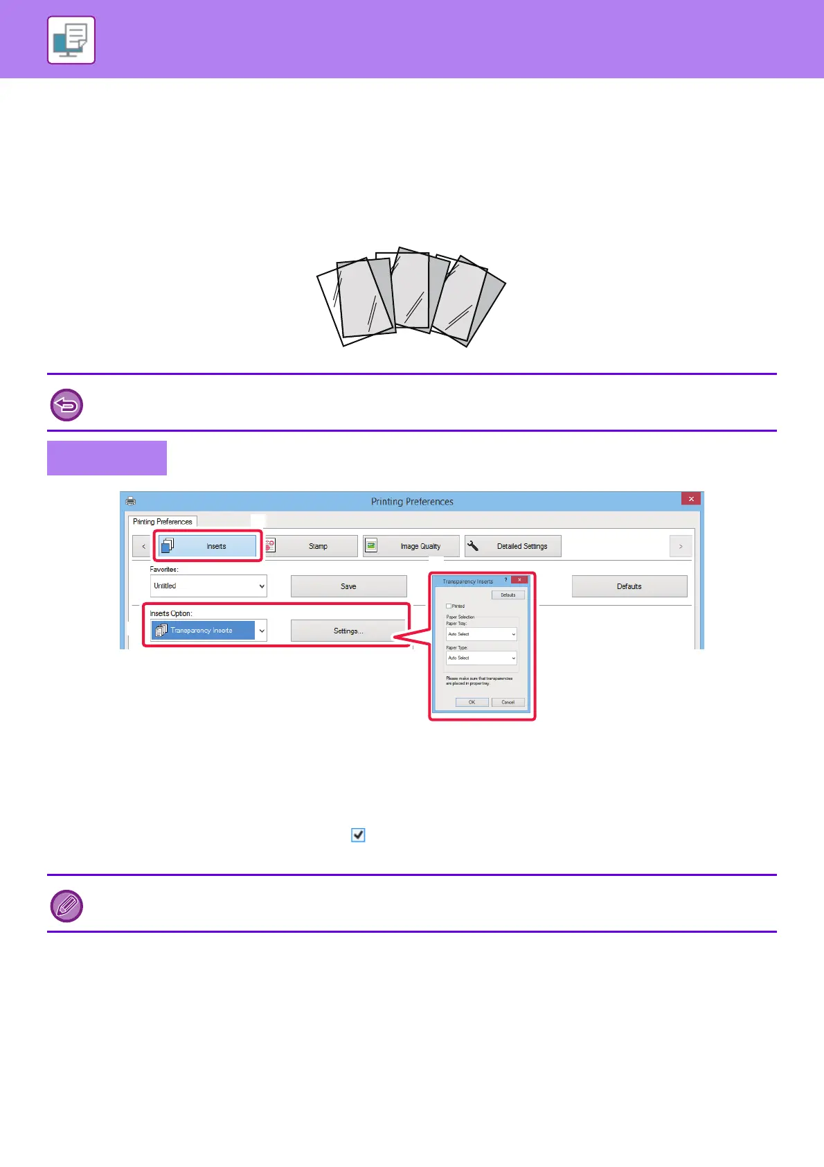 (2) Select [Transparency Inserts] and click the [Settings] button.