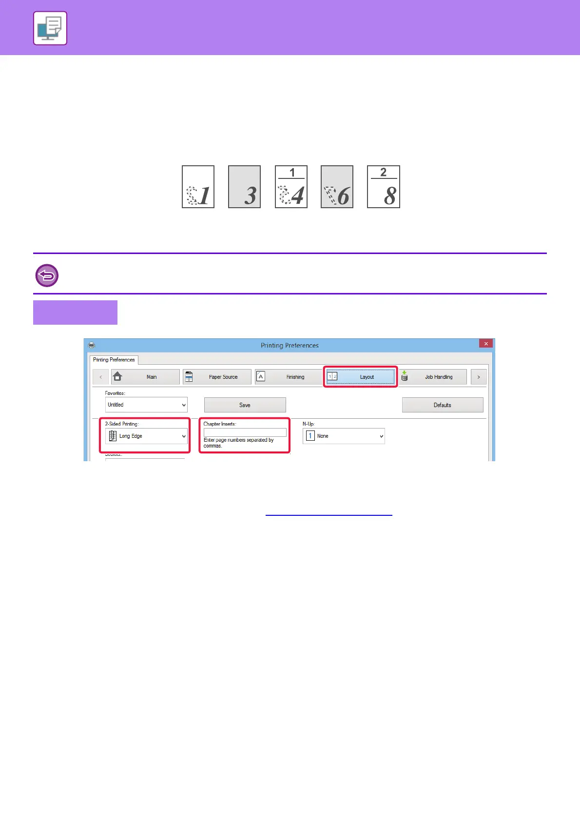 When you specify a page (such as a chapter cover page) to be printed on the front side of the paper, it is printed on the