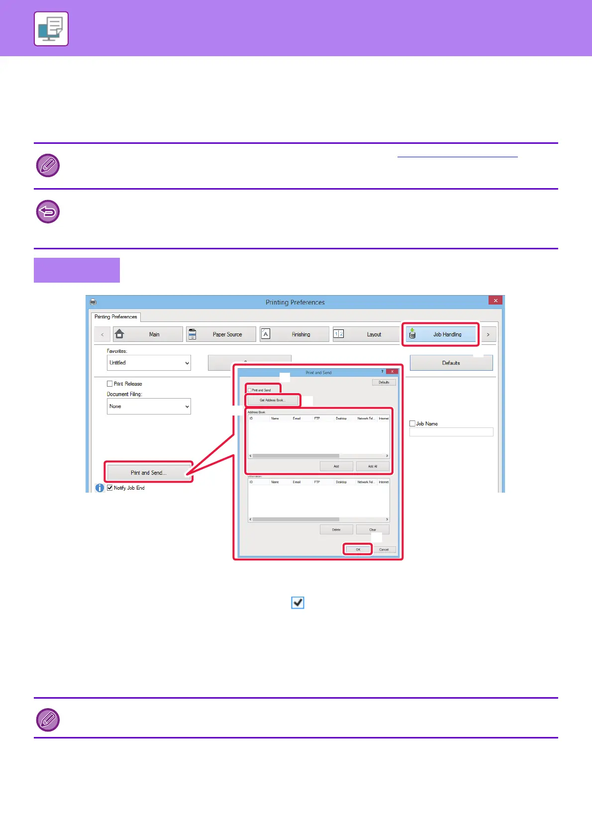 This function allows you to complete two tasks, printing and sending, with one operation from the printer driver.