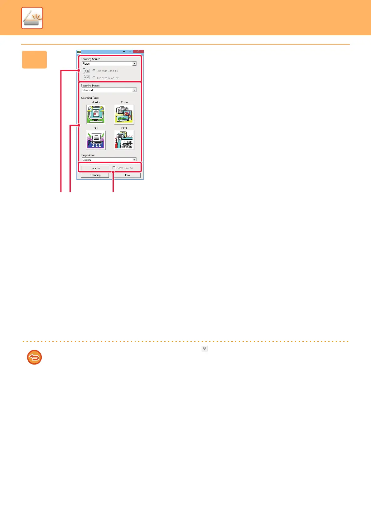 For further information on the scan settings, click the button in the preview image screen of step 7 to