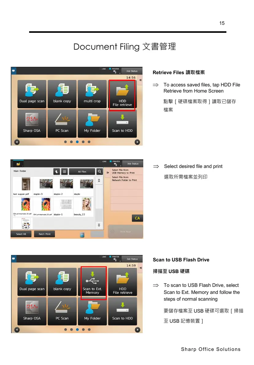 要儲存檔案至 USB 硬碟可選取掃描