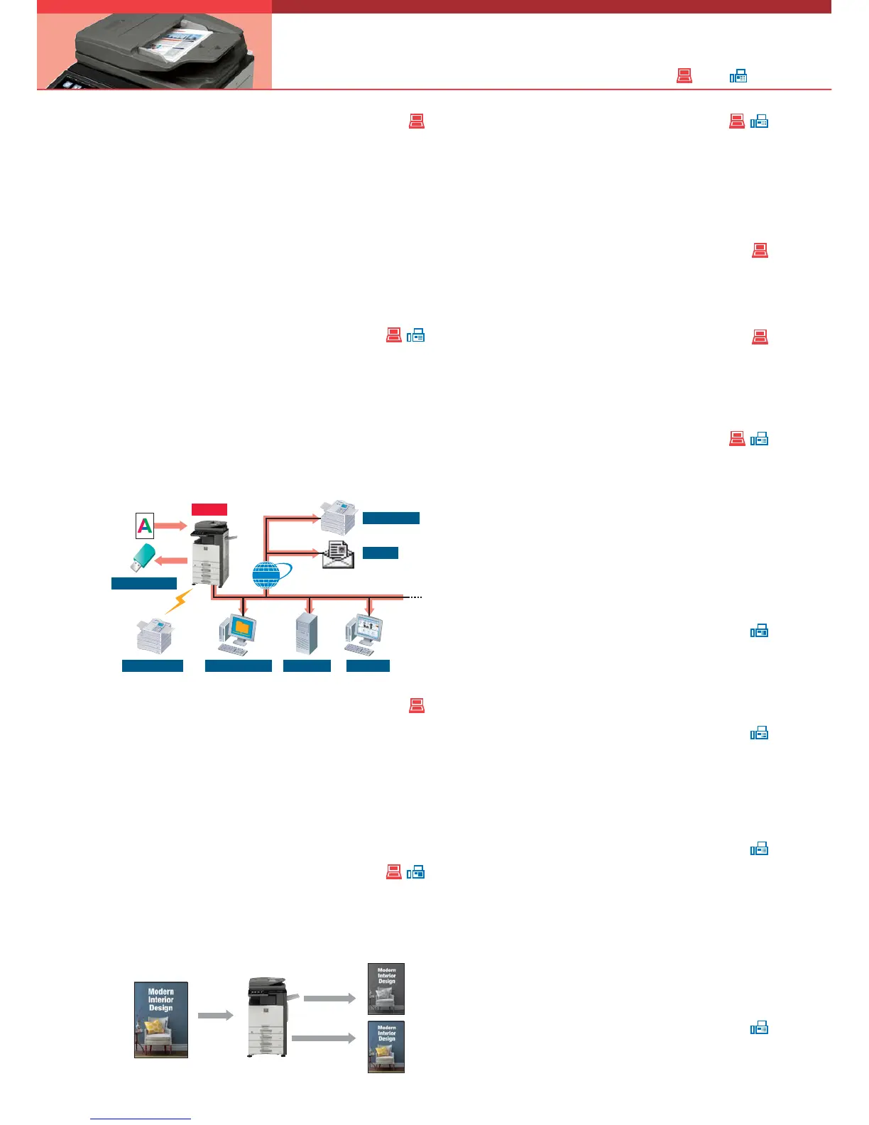Note: PC-Internet Fax requires optional MX-FWX1; PC-Fax requires MX-FX11.