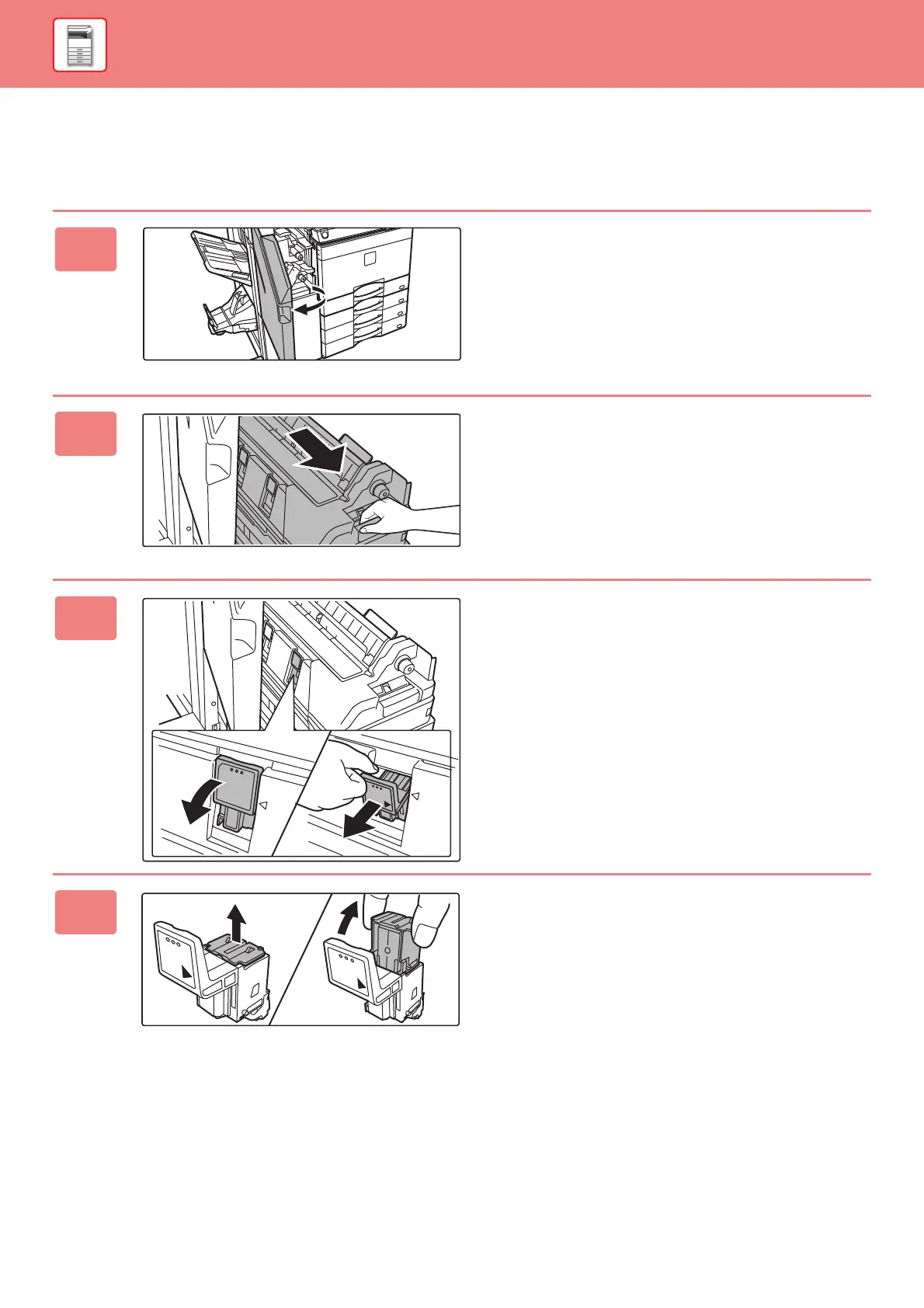 Before starting this procedure, remove all output from the output tray of the saddle finisher (large stacker). Do not
